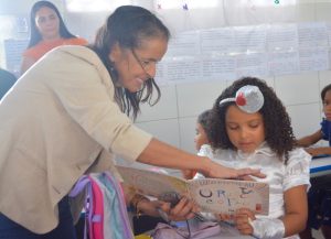 A primeira parada da equipe foi na Escola Municipal Messias Calumby, onde as articuladoras puderam observar uma atividade prática com os alunos, que estão em fase de consolidação da leitura. Em um momento marcado por emoção e engajamento, os estudantes realizaram uma belíssima apresentação do Hino de Piaçabuçu, demonstrando não apenas seu progresso na leitura, mas também o sentimento de pertencimento e valorização da cultura local.