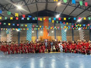 Já é São João em Branquinha. Nesta quarta-feira (11), na quadra da Escola Demócrito José, parte alta da cidade, a prefeitura, através da Secretaria de Assistência Social, promoveu o Festival de Quadrilhas. Em mais uma edição, os grupos: Junina Roda de Fogo de Murici; Flor de Laranjeira de Santana do Mundaú; Brilho Matuto de União dos Palmares; Luar do Nordeste de Messias; Luara do Sertão de Campestre; Dona Dadá e Rosa dos Ventos de Maceió; Luar do Campo de Campo Alegre, deram um verdadeiro show de cores, ritmos e alegria. A festa que também contou brinquedos infláveis, guloseimas e muita música ao som de Pitu, o Rei da Farra, teve como ponto alto a grande anfitriã da noite: Junina Lua Branca. Com o tema “Segredos do Coração”, o público vibrou e se encantou com a grande riqueza de detalhes tanto no figurino, quanto nas interpretações.